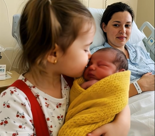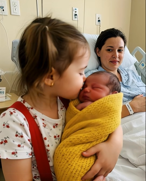 Lisa, mi hija mayor de cuatro años, estaba sentada al borde de la cama. Llevaba un mono rojo y su coleta estaba ligeramente torcida, como si ella misma la hubiera acomodado. Cuando le permití sostener a su hermana, sus manos temblaron. No por miedo, sino por el peso del momento. La miraba con una intensidad que nunca había visto en una niña tan pequeña. En sus ojos no había solo curiosidad; había seriedad.