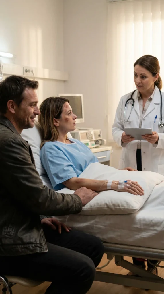 Entonces entró la doctora. Era joven, serena, concentrada. No parecía tener prisa. Me examinó con más detenimiento de lo habitual. Apartó la manga, revisó mis costillas, muñecas y hombros. Me miraba directamente a los ojos, no a través de mí como los demás. Mientras tanto, Daniel apretaba mi mano con tanta fuerza que dolía.