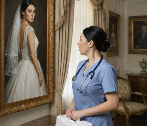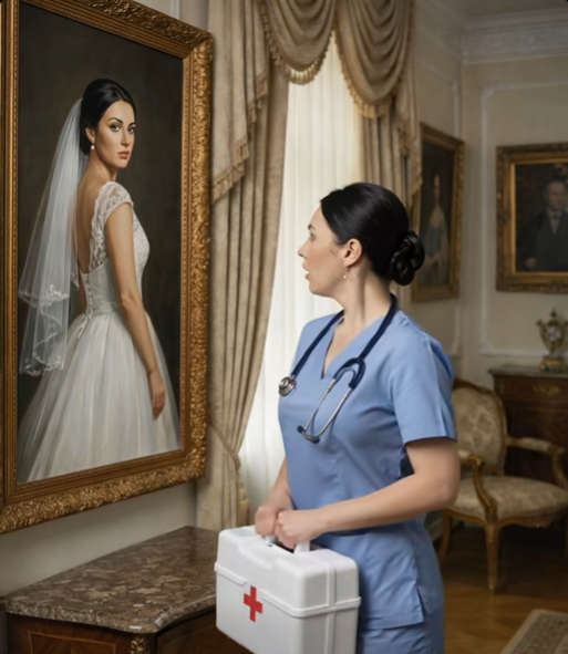 Cuando la enfermera llegó a una emergencia en la lujosa mansión de un millonario, inesperadamente vio en la pared su propio retrato con vestido de novia. ¿Cómo era posible, si no conocía al dueño y nunca se había casado? 😱😨 Lo que ocurrió después la aterrorizó de verdad. 😢