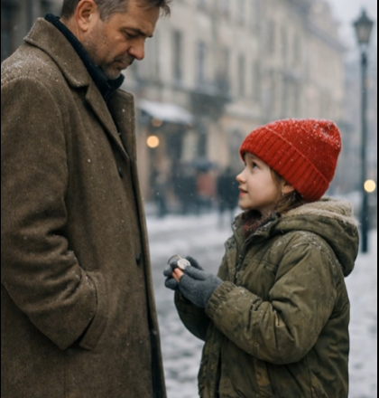 U dveří stála malá dívka, sotva osmiletá. Kabát jí byl velký, rukávy zakrývaly ruce, červená pletená čepice byla vlhká od mlhy. V natažené dlani držela drobný špendlík.
