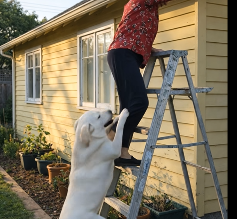 Vylezl(a) jsem na žebřík, abych odstřihl(a) suché větve ze stromu, ale najednou můj pes začal naléhavě štěkat a tahat mě za nohavici. Nejprve jsem si myslel(a), že jen blázní nebo si hraje a může mě nechtěně shodit ze žebříku