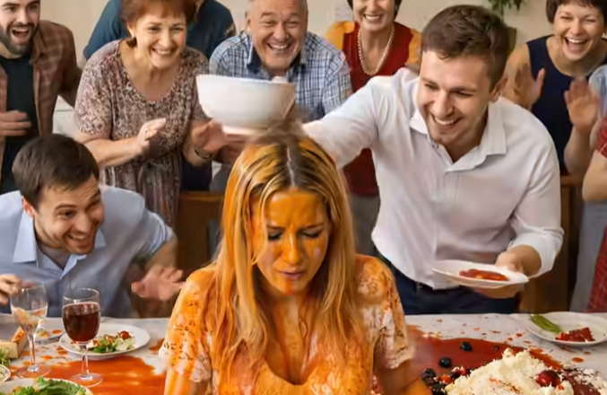 Vzal velkou mísu horké polévky. Všichni si mysleli, že pronese přípitek nebo si jen nabere. Ale v následující vteřině — bez jakéhokoli varování — vylil celý obsah na hlavu své ženy.