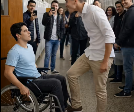 Na chodbě zavládlo těžké ticho. Alex stále seděl na vozíku, promočený a třásl se zimou — ale poprvé po dlouhé době se kolem něj nikdo nesmál.