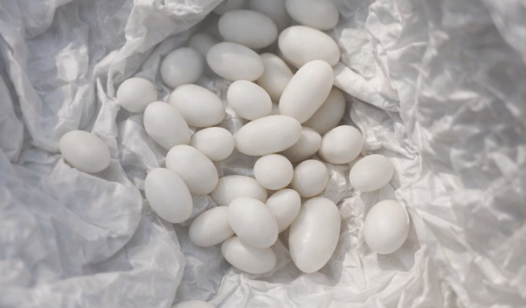 Uvnitř byly bílé kuličky, přesněji oválné komůrky rovného tvaru, hladké, podivné, skoro umělé. Nebyly úplně stejné, ale velmi si podobné. Bílé, matné, s nepříjemným, vlhkým zápachem, který se mi hned nelíbil. To rozhodně nebyly dražé, tablety ani obyčejné bonbóny.