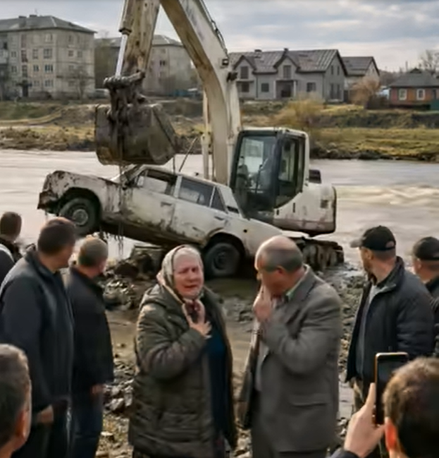 Technika ji pomalu vyzdvihla na břeh. Lidé začali přicházet, někdo už volal známým, lidé nemohli uvěřit tomu, co se děje. Auto bylo pokryté bahnem, skla rozbitá, karoserie zdeformovaná, ale pochybnosti nebyly.