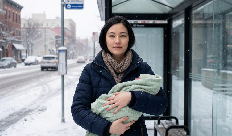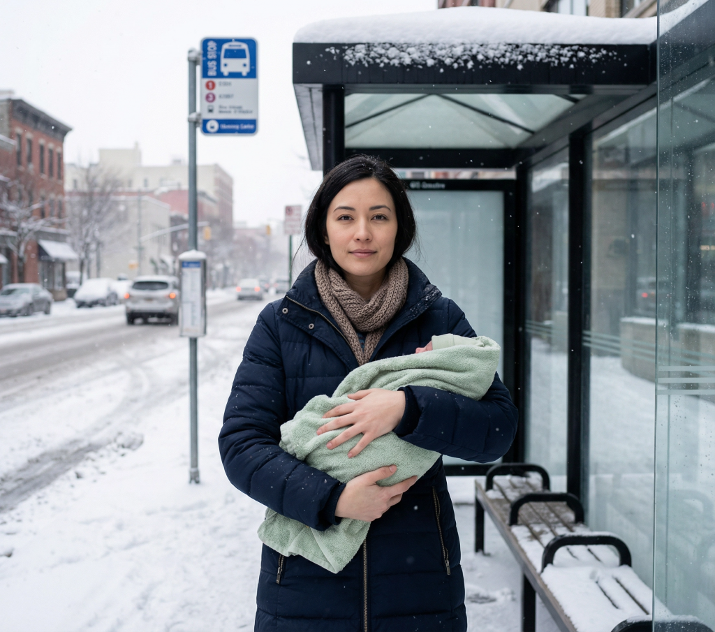 Stála na okraji parkoviště, trochu stranou, jako by se snažila být neviditelná. V náručí držela malé dítě, zabalené jen v tenkém ručníku. Byla zima, vítr jí pálil do tváře a třásla se tak, že to nešlo přehlédnout.