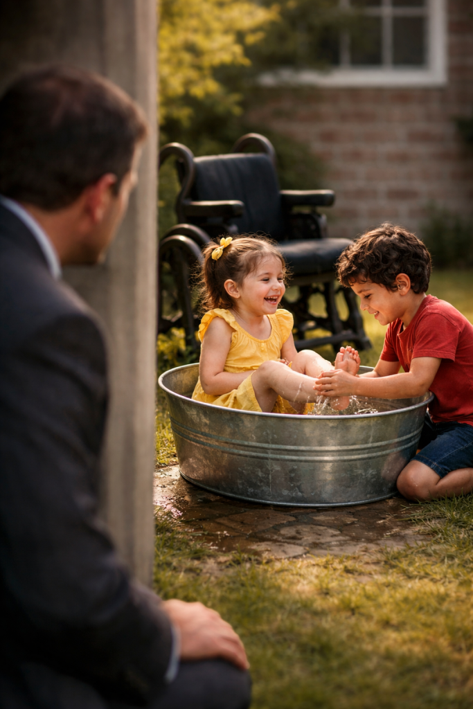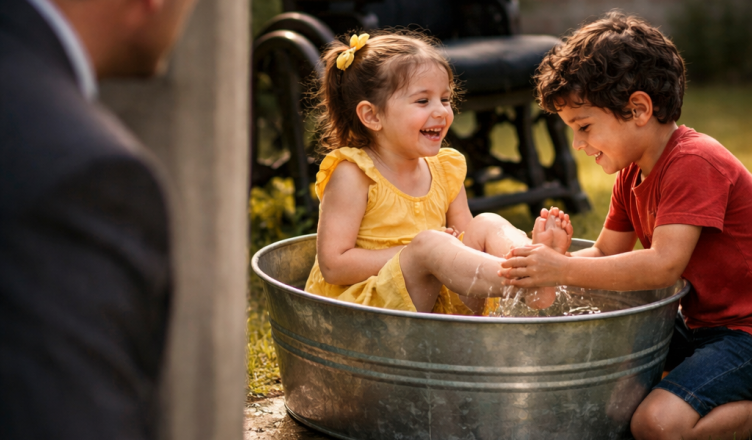 Ochránitelský otec byl přesvědčený, že neznámý chlapec ubližuje jeho postižené dceři v kovové vaničce na dvoře…