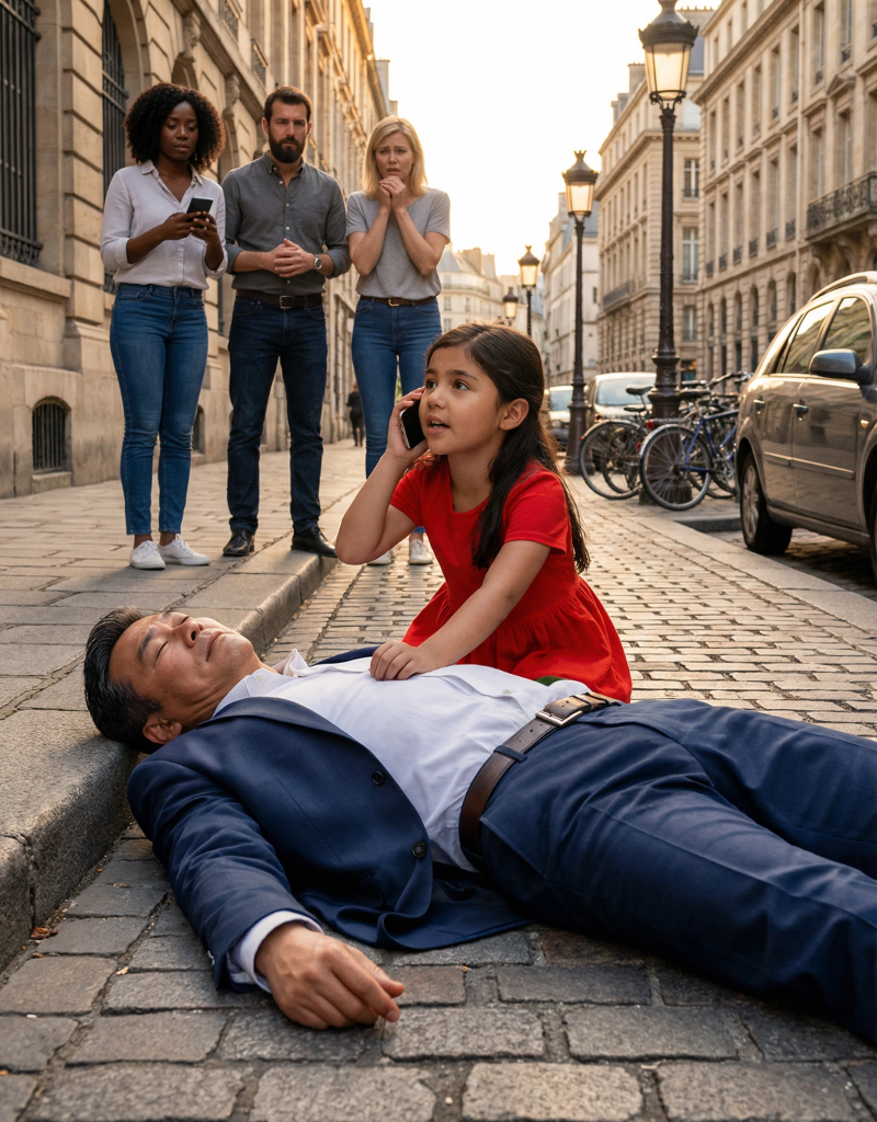 Ležel napůl na silnici, napůl na chodníku. Jeho oblek byl upravený, drahý, kravata povolená, jako by si ji ve spěchu uvolnil. Ruka natažená vpřed, prsty nehybné. Tvář nepřirozeně bledá.