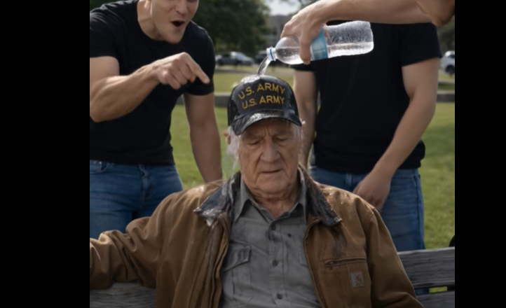 Jeden z chlapců otevřel láhev a polil starce celou vodou. Druhý se smál a natáčel telefonem. Třetí se chystal udeřit, aby získal lajky.