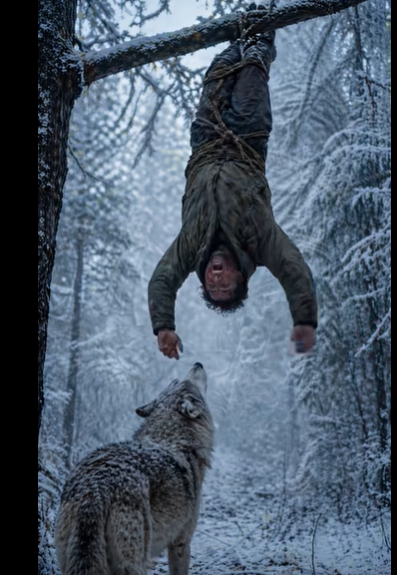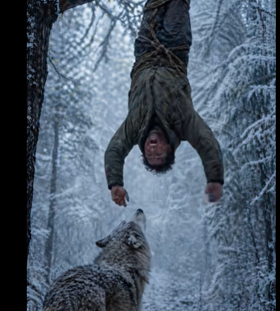Vlk vyskočil a zakousl se do lana. Lesník si nejdřív myslel, že ho chce přetrhnout, aby se k němu dostal. Lano se napjalo, zapraskalo. Otevřel oči a uviděl, jak predátor zuřivě trhá provaz — ne jeho.