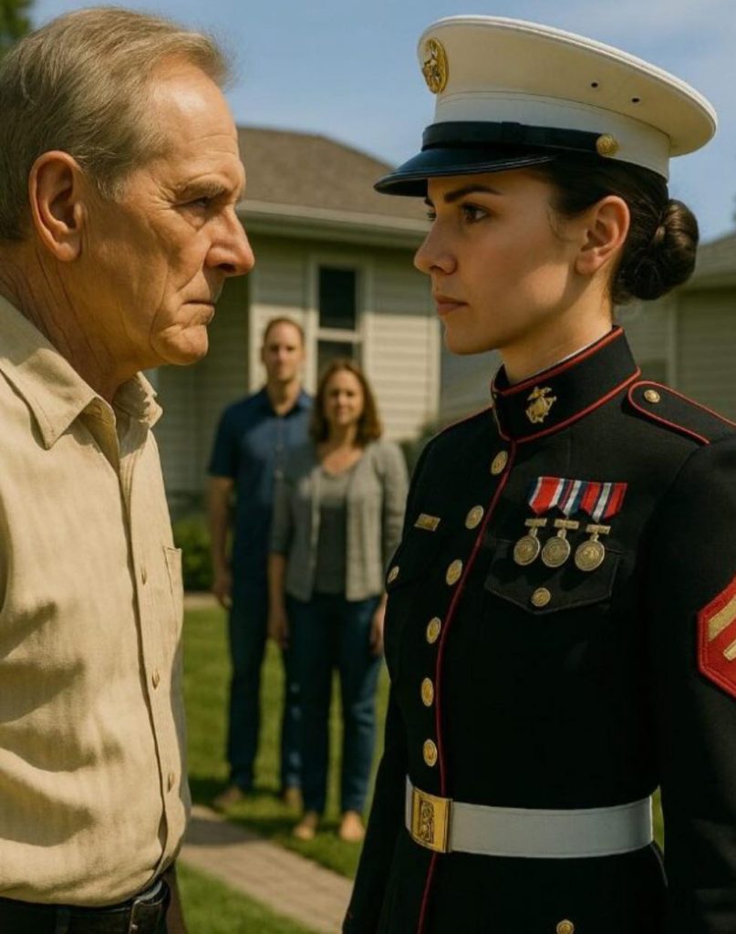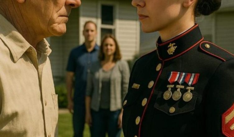 Veinte años después del porche, papá estaba en nuestra puerta. Albert, firme como siempre, hizo la pregunta que lo detuvo: “¿Han venido por la general Morgan?” Vinieron. Y cuando mi padre finalmente encontró mi mirada, no halló frialdad ni juicio. Encontró una habitación llena de testigos y una vida reconstruida. Ofreció palabras que sabían a pan caliente: “Me equivoqué”. El pasado no lo borramos. Aprendimos a colocar los platos con cuidado.