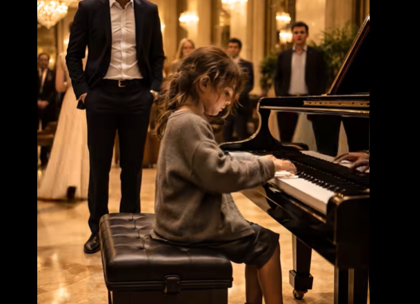 Llegaron hasta el piano de cola reluciente, que se alzaba como el centro de aquel enorme vestíbulo. El personal de seguridad del hotel y la recepcionista observaban la escena con una pregunta no formulada en los ojos. El hombre señaló el instrumento, con las manos en los bolsillos, aún esperando un silencio incómodo o los primeros acordes inseguros que confirmarían su “victoria”. La joven se sentó. Su mirada se posó sobre el teclado, pero no como la de una extraña.