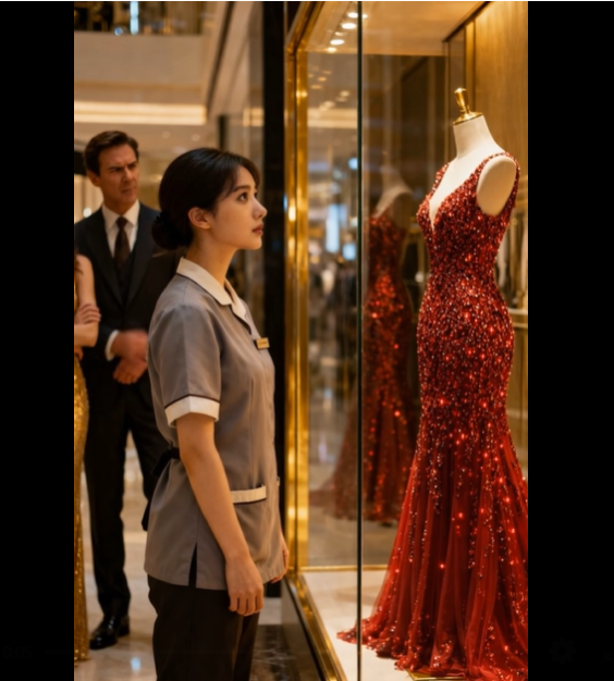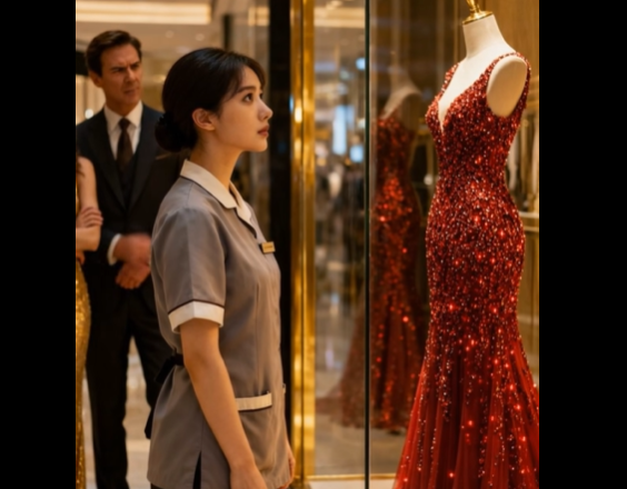 Él no pudo responder. Observó cómo Apolline, rodeada de hombres con traje y cámaras parpadeantes, se desplazaba con gracia hacia el escaparate que minutos antes había comentado con burla. Los empleados del centro comercial retiraron rápidamente y con una devoción casi religiosa la lámina protectora del escaparate. Dentro no había un solo vestido. Era toda una colección. En el maniquí central brillaba la misma “pieza rara e incalculable”: un vestido de noche de satén de seda, brocado y delicadas encajes, adornado con lo que parecían auténticos zafiros y perlas. Y a su lado colgaba una sencilla placa con el nombre de la marca: “Apolline. Haute Couture.”