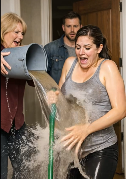 Mark se quedó parado en el umbral. Frente a él estaba su madre con el balde vacío en la mano y su esposa empapada, pálida y temblando. Por un segundo, el tiempo se detuvo. En su mente corrían cientos de pensamientos, pero su cuerpo reaccionó antes que su razón.