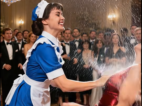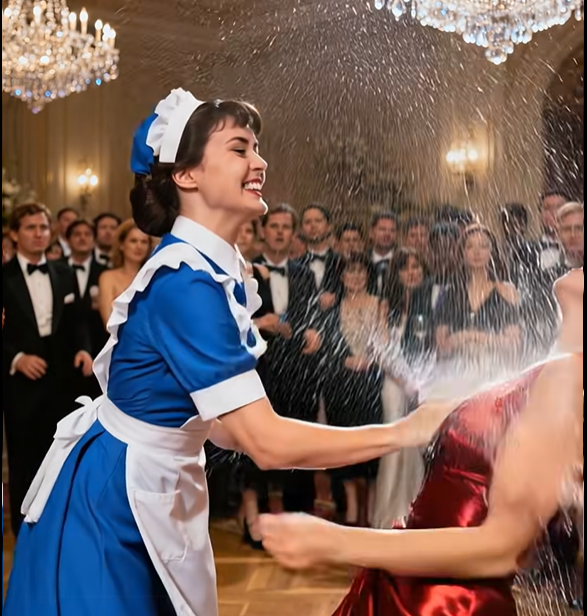 Una joven camarera se acercó a la mesa. Uniforme azul sencillo, el cabello recogido, un rostro donde se mezclaban los nervios y el cansancio. Era su primer turno en aquel lugar. Su mano tembló ligeramente al dejar la copa de vino. Dos gotas cayeron sobre el mantel blanco como la nieve.